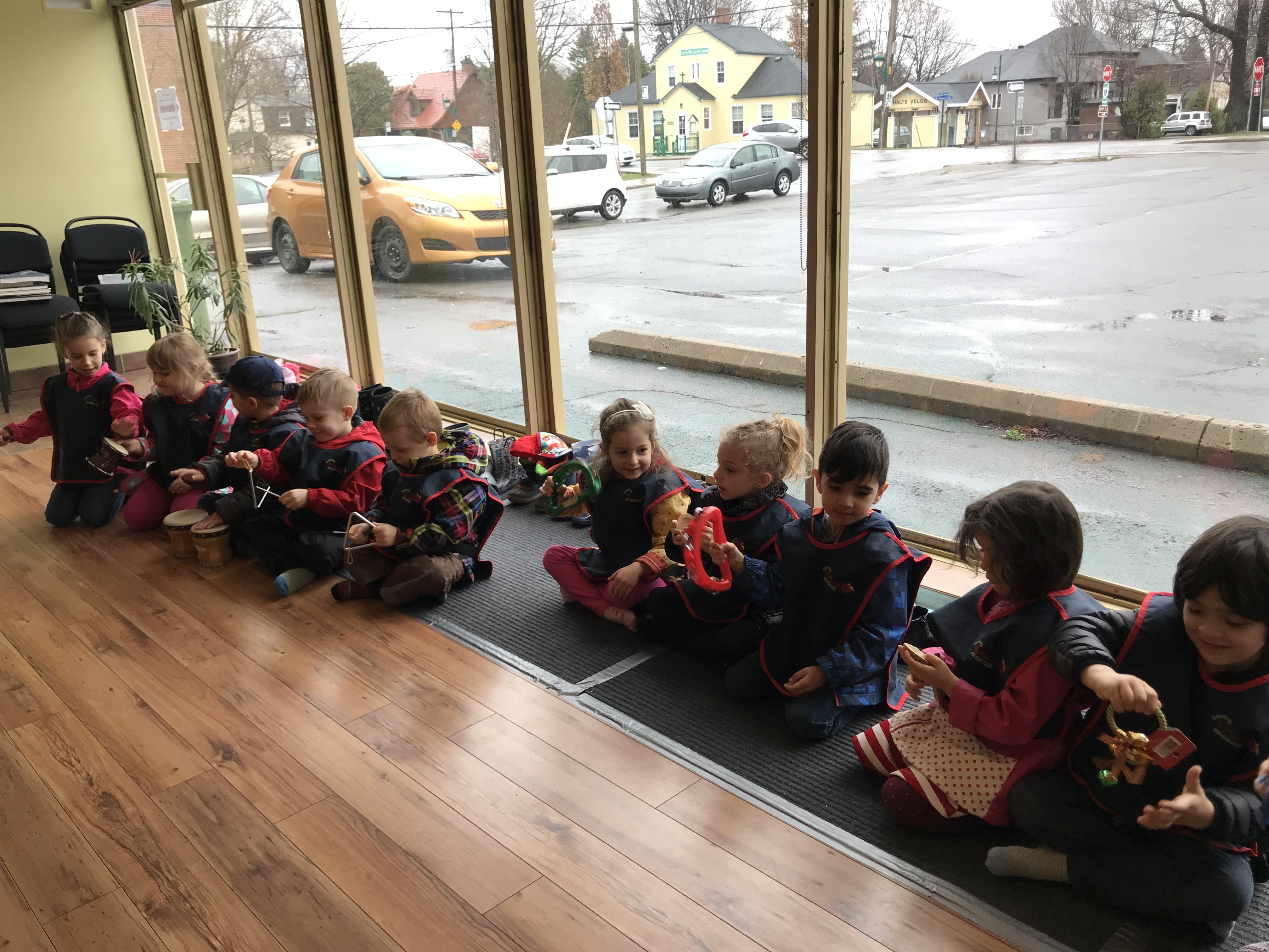 Mélanie, une des professeures de musique de l'école, a joué au violon et elle a appris aux enfants une chanson avec des gestes. Elle leur a présenté plusieurs instruments de musique et les enfants ont eu la chanse de jouer avec.